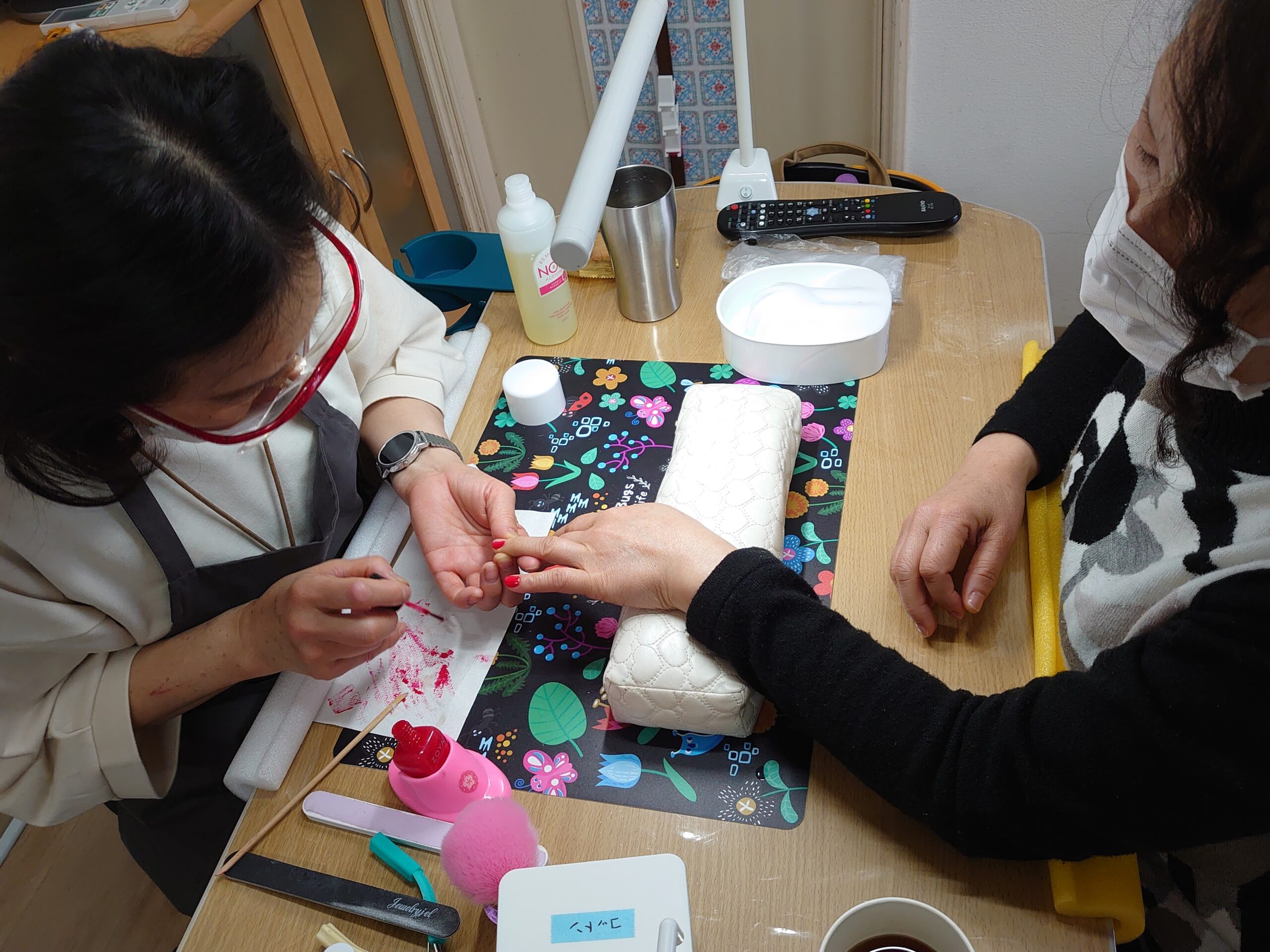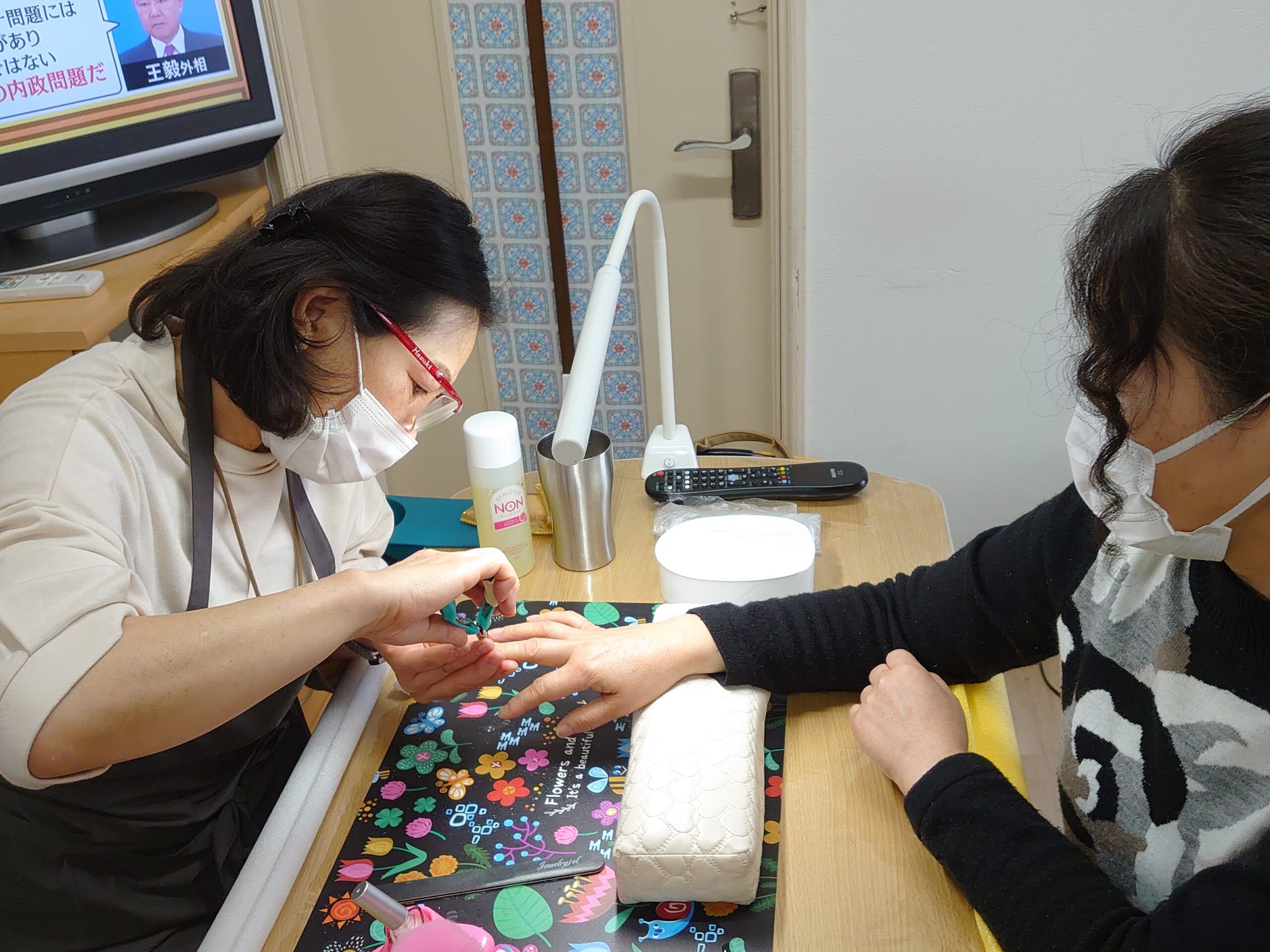 - お好きな色のマニキュアを塗ります。(※有料オプション)
